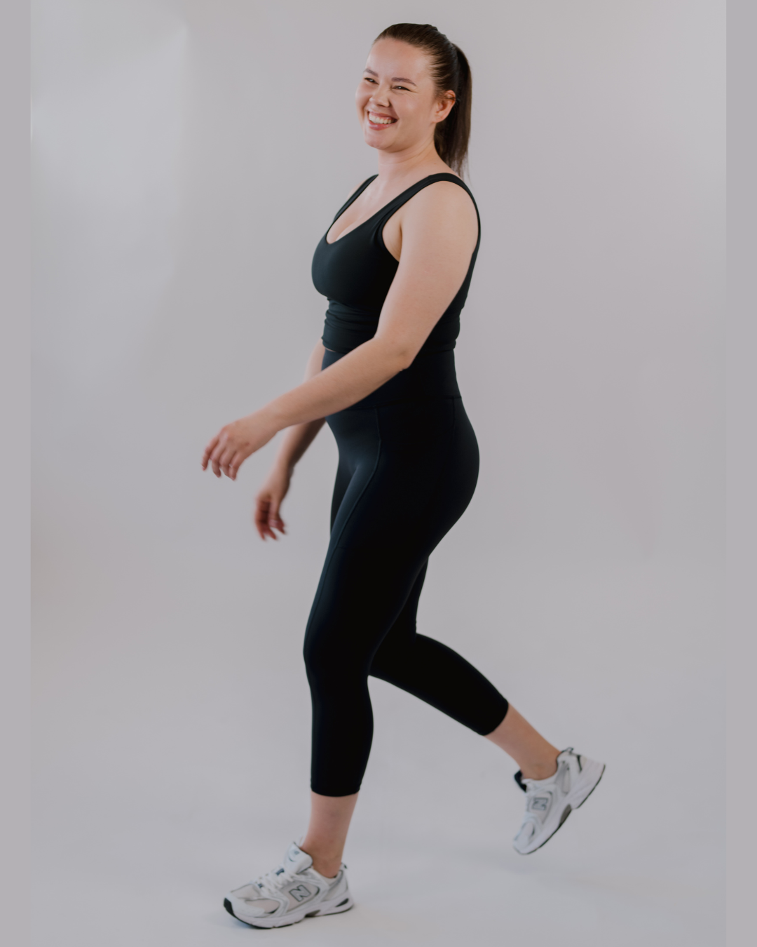 Most Evom styles are high-waisted for core support, a smoothing fit, and no slip during workouts.  The waistband has been specially made with internal paneling for more mid-secion support and hold.